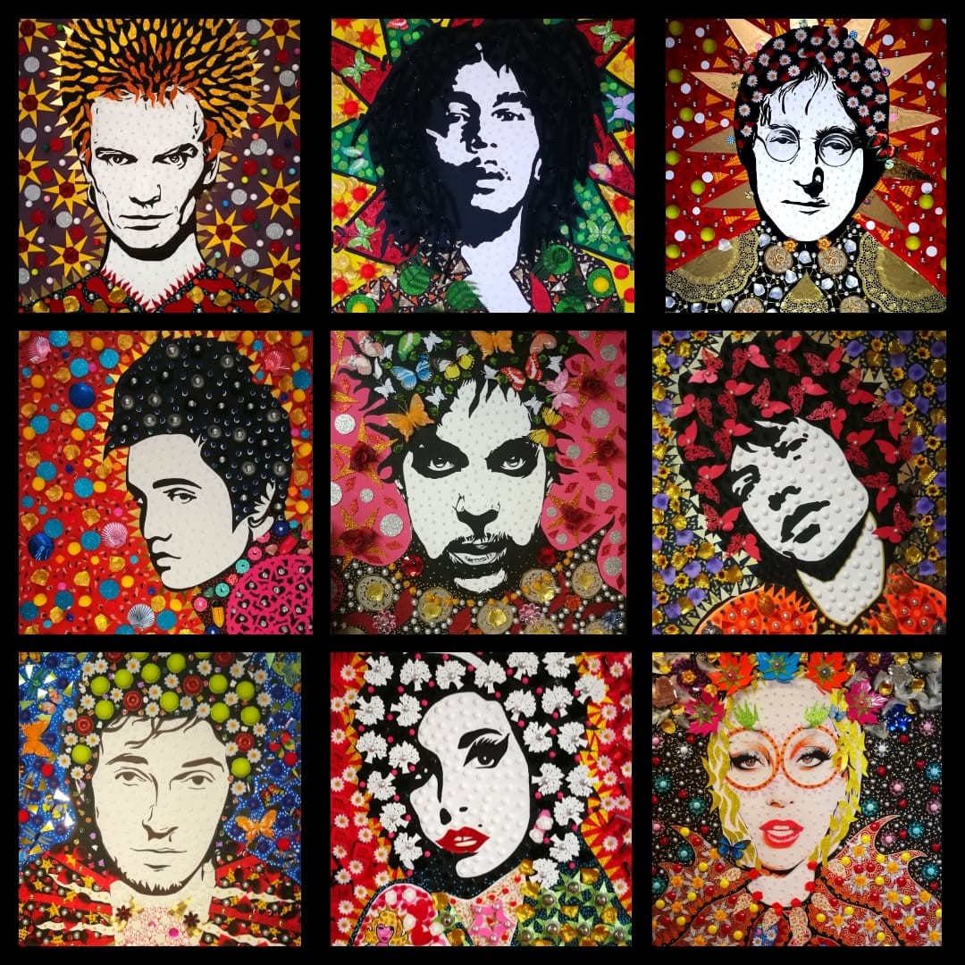 A dare forma, immagine e colore al Rock, ad animare star italiane e internazionali, è l’arte di Kokokid, alias Massimo Malpezzi, che prende in mano pezzettini di plastica, brillantini, pattern lucenti, gemme, li mischia, li ordina, li dispone, facendo nascere delle creazioni raffiguranti artisti del calibro di Madonna, Lady Gaga, Prince, Freddie Mercury, Jim Morrison.