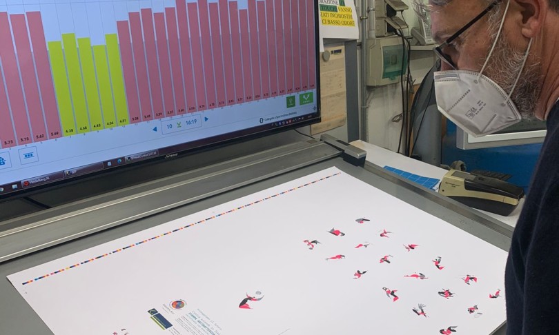 Per garantire la massima sicurezza senza però sprecare carta, nasce quindi questo tipo di ‘stampa protettiva’, che può essere utilizzata sia per semplici brochure che per il mondo del packaging. Questo attraverso l’impiego di prodotti sanificanti e additivi chimici inseriti nella macchina, nel liquido di bagnatura e nella finitura sopra il foglio, in grado di creare una barriera protettiva inospitale per le particelle infettive. “Succede in questo modo che se prendo un foglio, anche se sulla mia mano c’è un batterio o un virus, quando lo passo a un’altra persona, questa non rischierà di contrarlo, perché il prodotto risulterà totalmente sanificato”, spiega Enzo Guazzarini