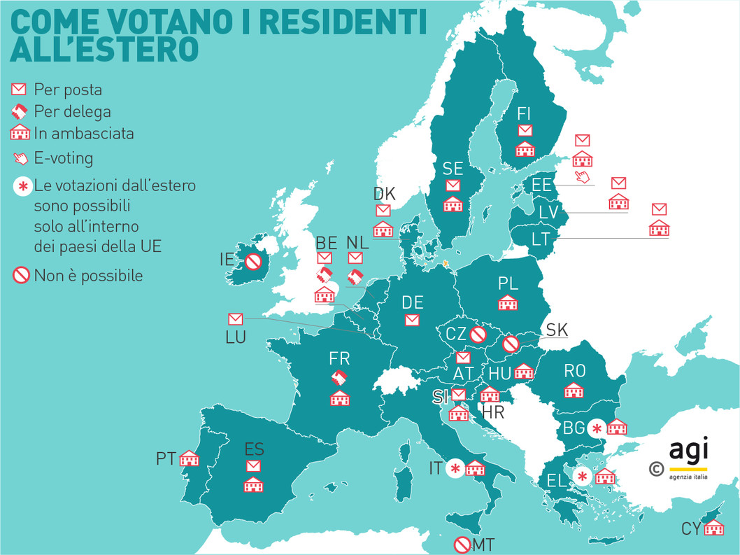 Il voto per corrispondenza è consentito agli elettori italiani residenti all’estero, iscritti all’anagrafe degli italiani residenti all’estero (AIRE) e agli elettori italiani temporaneamente residenti all’estero per motivi di studio, lavoro o cura, che abbiano presentato domanda di voto all’estero al proprio comune di residenza nei termini previsti. In Italia non si può votare per procura.
