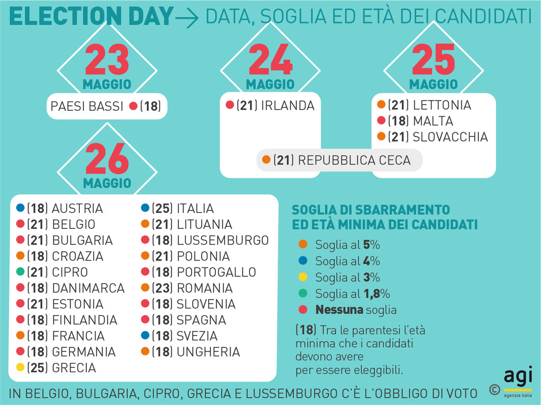 Le elezioni europee si terranno in Italia il 26 maggio 2019. Chiunque abbia compiuto 18 anni potrà votare; per candidarsi è invece necessario avere compiuto 25 anni. È possibile votare per i candidati italiani anche dall’estero, nei Paesi membri dell’UE, nel rispetto di determinate condizioni.