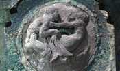 La lamina bronzea ha nella parte superiore piccoli medaglioni, sempre in stagno, che riproducono amorini impegnati in varie attività. Nella parte inferiore del carro si
