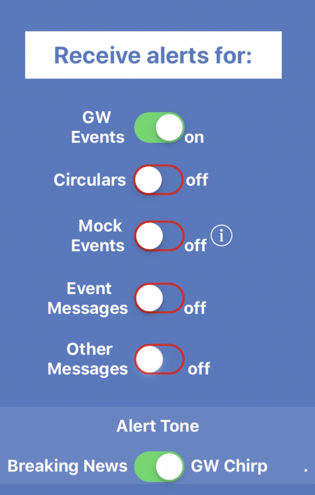 L’app vi permette di ricevere gli annunci di nuove allerte gravitazioni ma, se volete, potete essere avvisati per ogni CGN che viene inviata. Prima di decidere quale allerta volete attivare, considerate che ci si aspetta una allerta gravitazionale circa una volta alla settimana ma che ogni allerta genera decine di GCN, man mano che tutti gli strumenti potenzialmente interessati fanno osservazioni e riportano i risultati.
