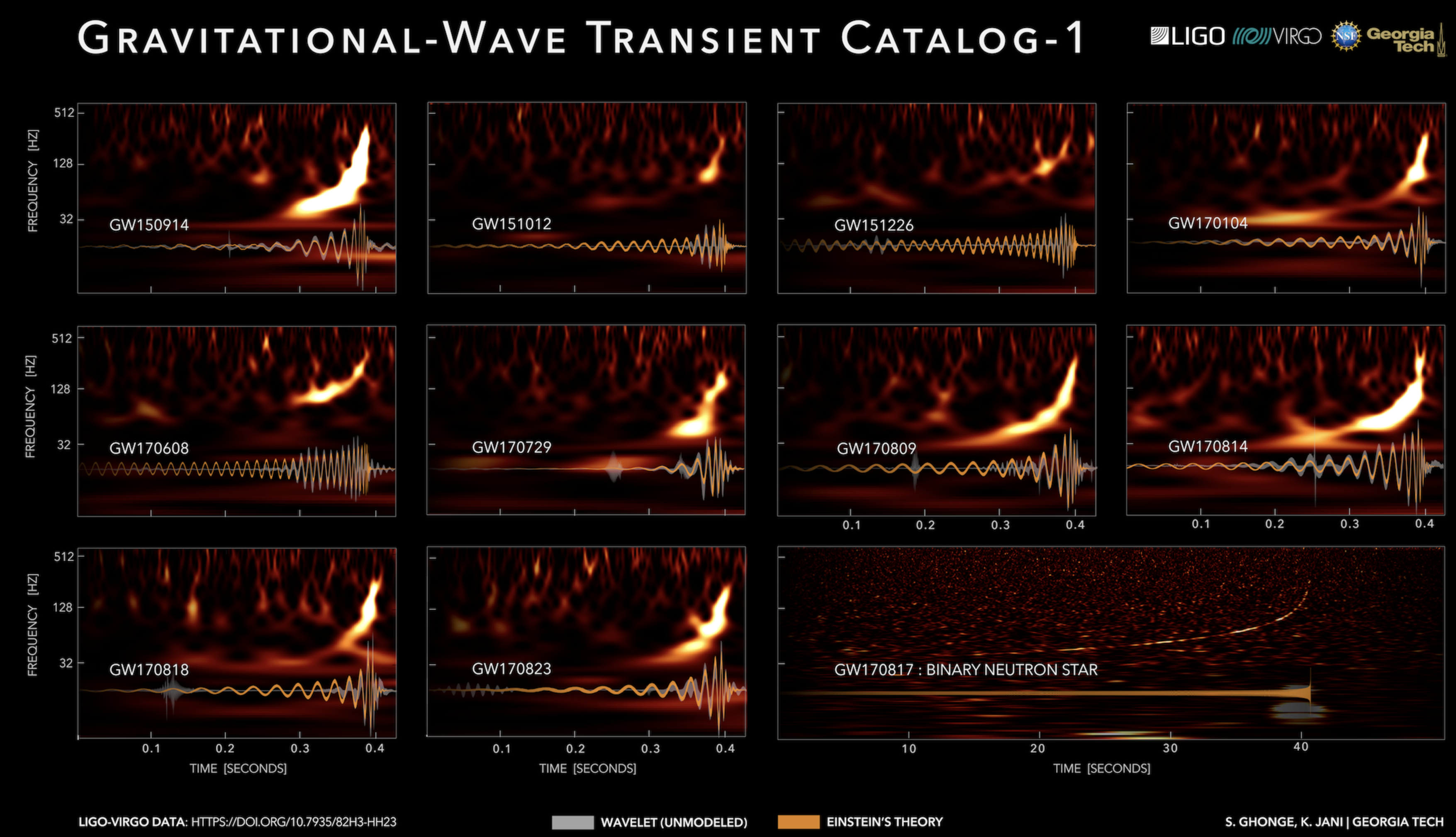 Nel sito vedete LIGO/Virgo con la sigla (che è la data anno-mese –giorno) che identifica ogni evento. Accanto alla sigla una lista di nomi di strumenti che hanno contribuito alla campagna di ricerca.