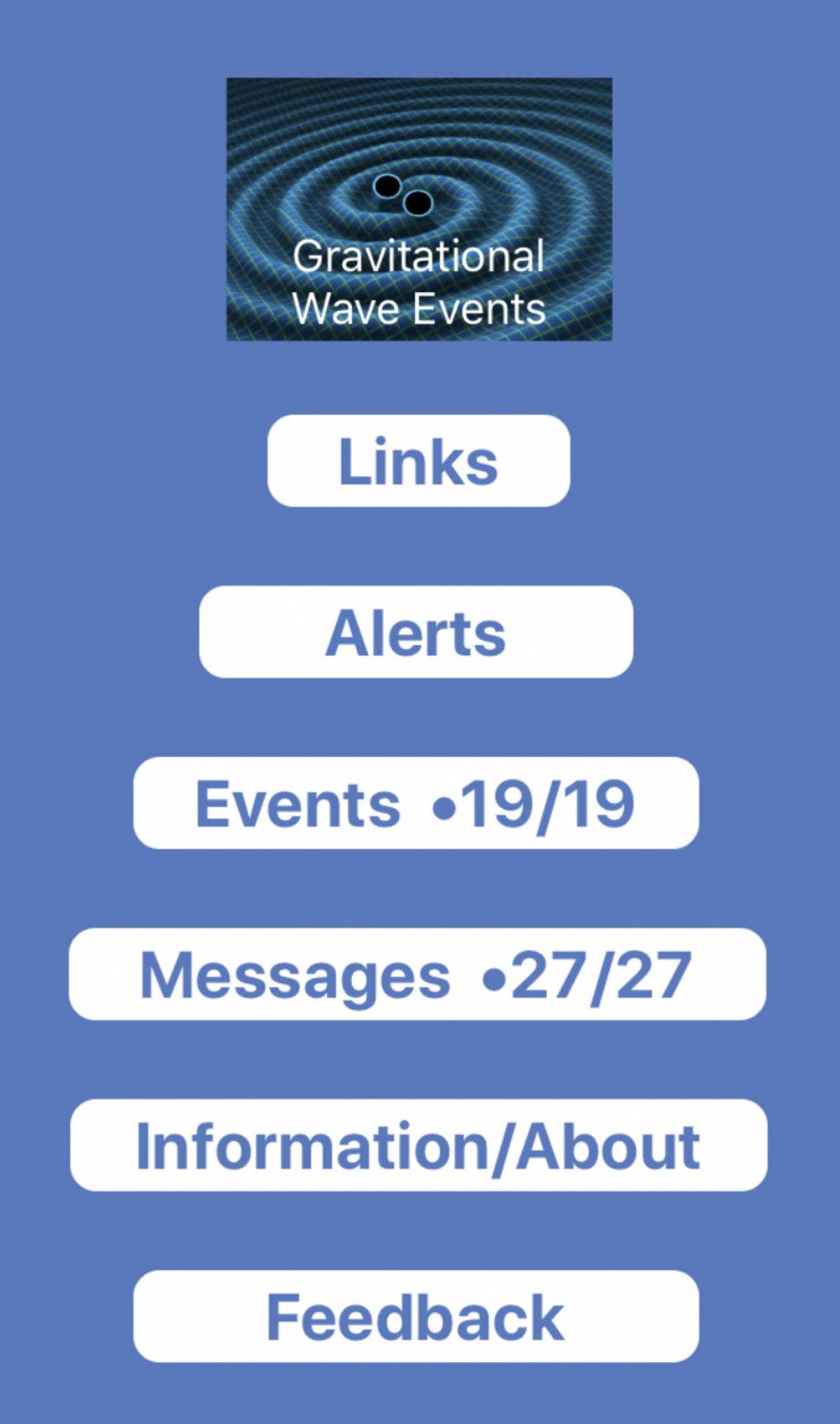 Si tratta di una applicazione essenziale che non concede nulla alla grafica. Vuole solo informare della rivelazione di una possibile onda gravitazionale e di tutto quello che la comunità astrofisica fa per cerca di identificare l’oggetto responsabile.