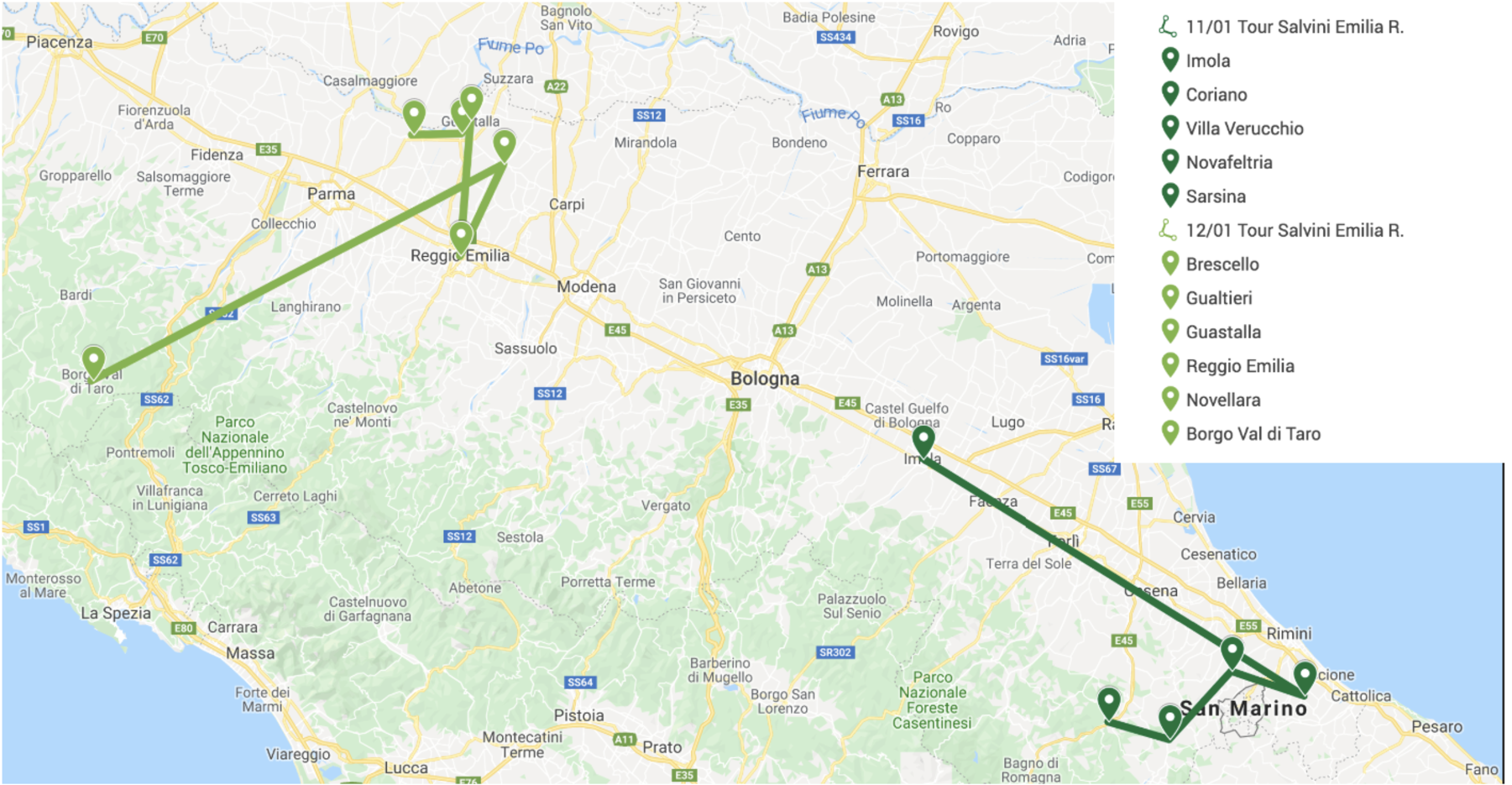 Saranno due giorni molto intensi per il leader del Carroccio che, tra sabato e domenica, visiterà molti luoghi della regione. Dopo la partenza a Imola si recherà a Coriano, Villa Verrucchio, Novafeltria e Sarsina. Il giorno dopo, invece, si sposterà a Brescello, Gualtieri, Guastalla, Reggio Emilia, Novellara e Borgo Val di Taro.