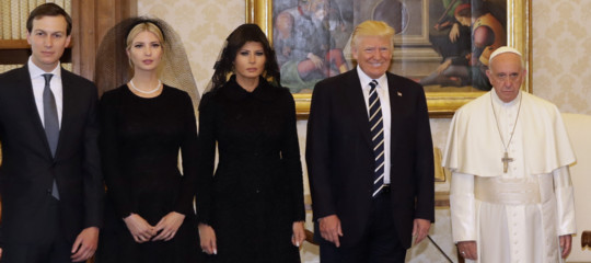 Papa Francesco con il presidente degli Stati Uniti Donald Trump, la moglie Melania, la figlia Ivanka e il genero e consigliere senior della Casa Bianca Jared Kushner