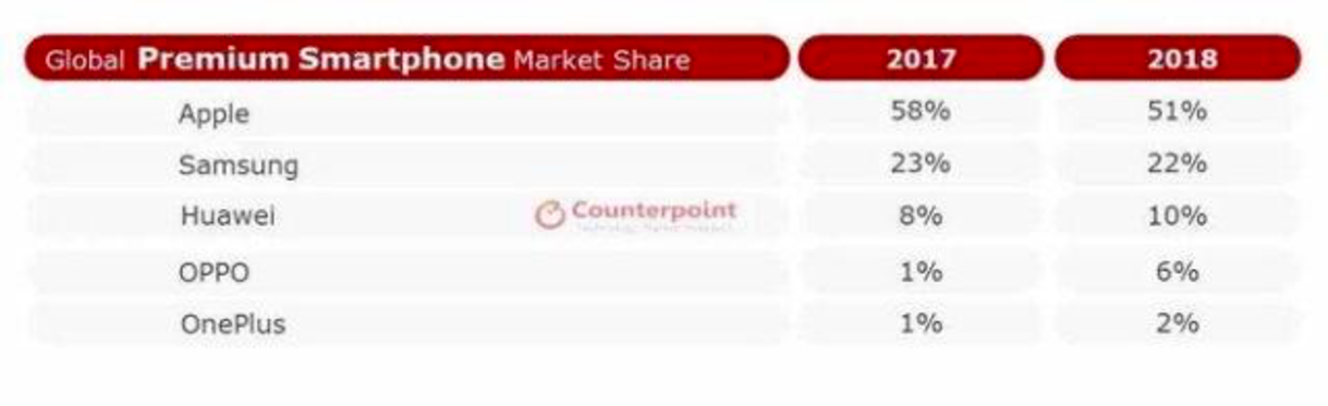 Alle spalle dei “Big 3”, si conferma OnePlus. Altro esempio di marchio cinese tra i primi cinque produttori premium. Ha una quota di mercato del 2%, raddoppiata rispetto a due anni fa. “In controtendenza – spiega OnePlus – dal 2017 al 2018 le vendite dei nostri smartphone sono aumentate del 45% a livello globale”. In particolare, il marchio è leader in India, è quarto in Europa occidentale, Medio Oriente e Africa. Così come in Nord America (dove è il primo brand cinese).