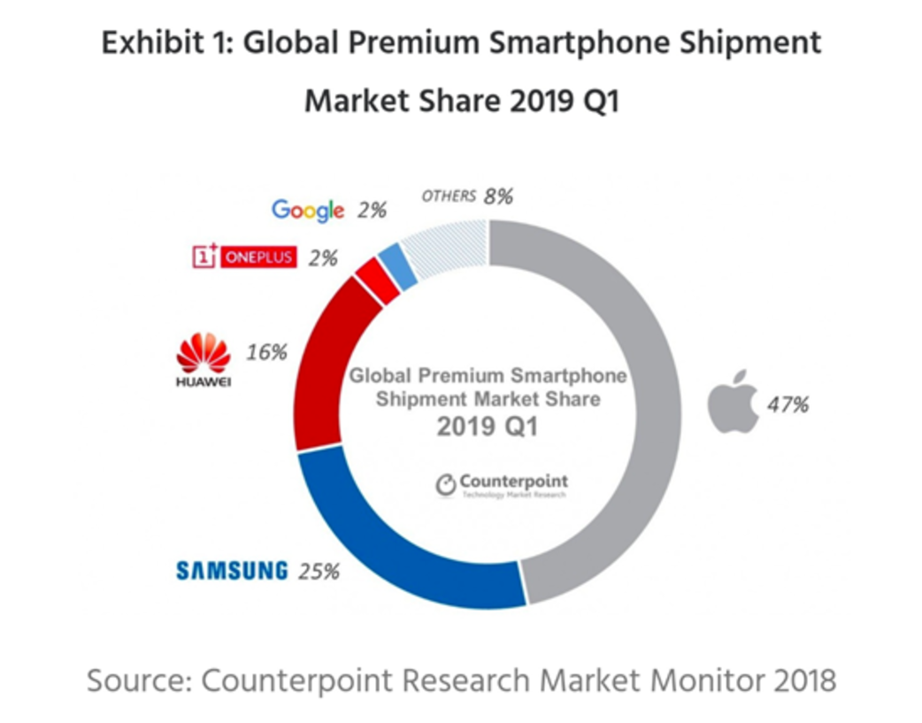 Apple sprofonda. Samsung e OnePlus brindano e Huawei butta giù l’ultimo sorso di spumante prima di affrontare tempi grigi. Continua la crisi degli smartphone di fascia alta: nel primo trimestre 2019, le vendite sono calate dell’8% rispetto allo stesso periodo del 2018. Ma c’è chi si dispera e chi gioisce. Lo afferma un’analisi di Counterpoint Research. È vero che il mercato degli smartphone è stagionale e risente anche del calendario delle presentazioni, ma le tendenze individuate dal rapporto sembrano confermare quelle dell’intero 2018.